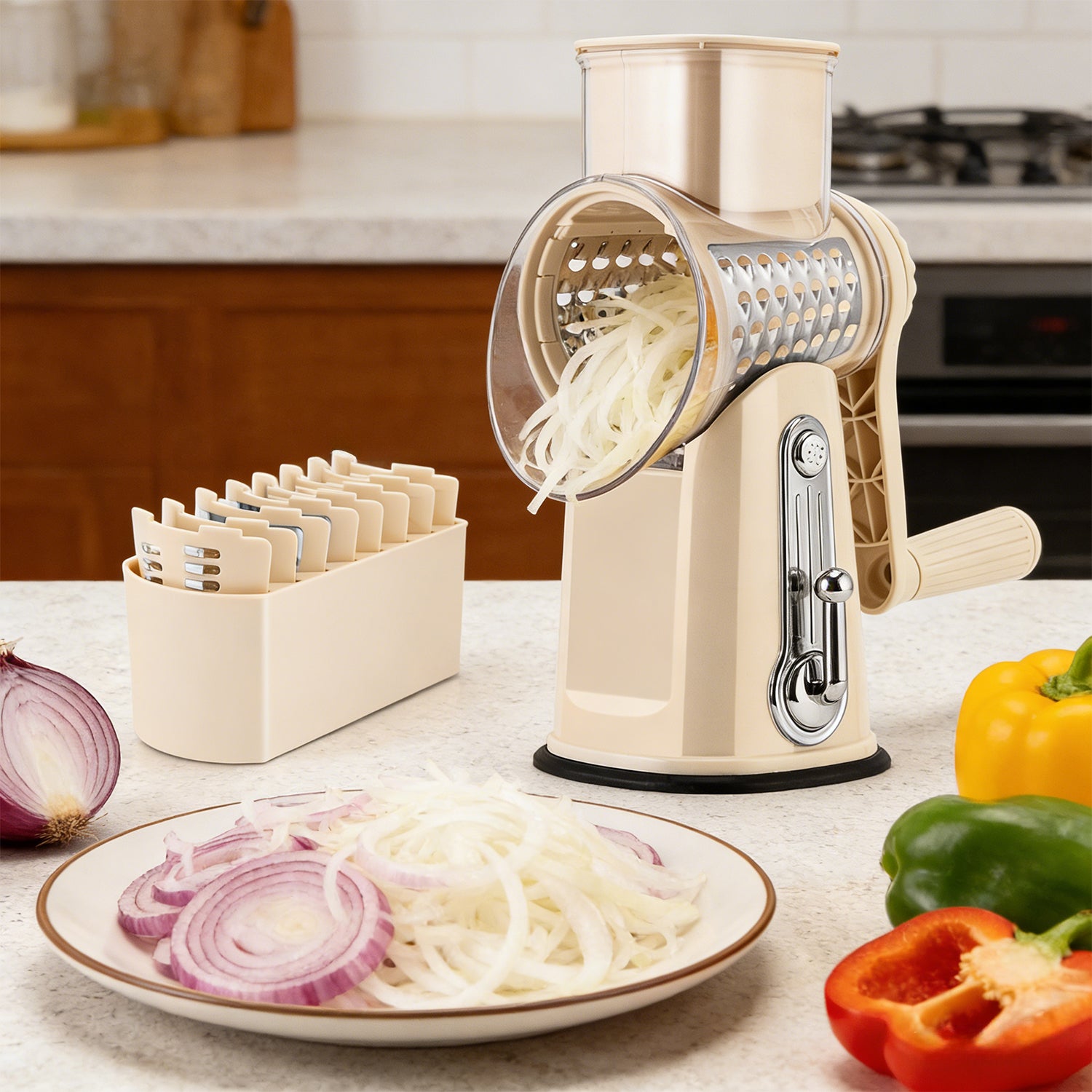 The tilt of the transparent barrel makes ingredients come out smoother, which helps avoid getting grater jammed.