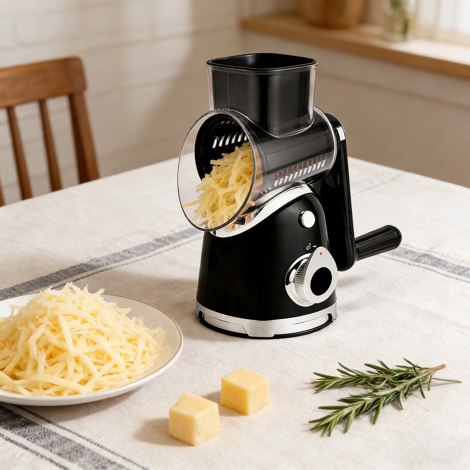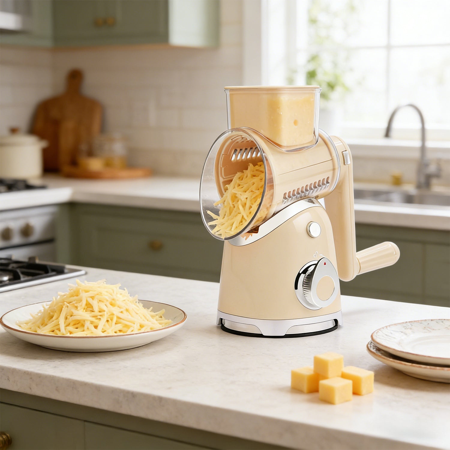 The tilt of the transparent barrel makes ingredients come out smoother, which helps avoid getting grater jammed.