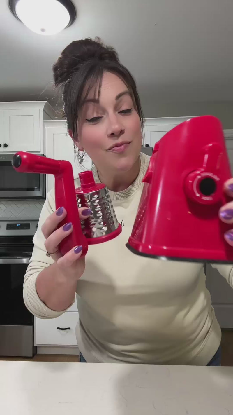 The tilt of the transparent barrel makes ingredients come out smoother, which helps avoid getting grater jammed.