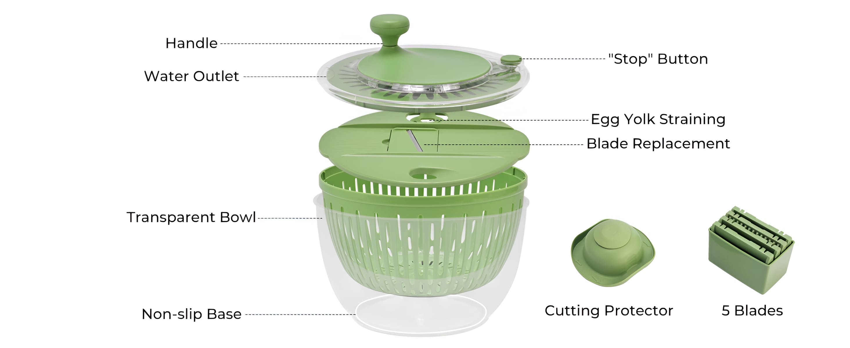 SUSTEAS Salad Spinner, 4.25Qt with 5 Blade Slicer