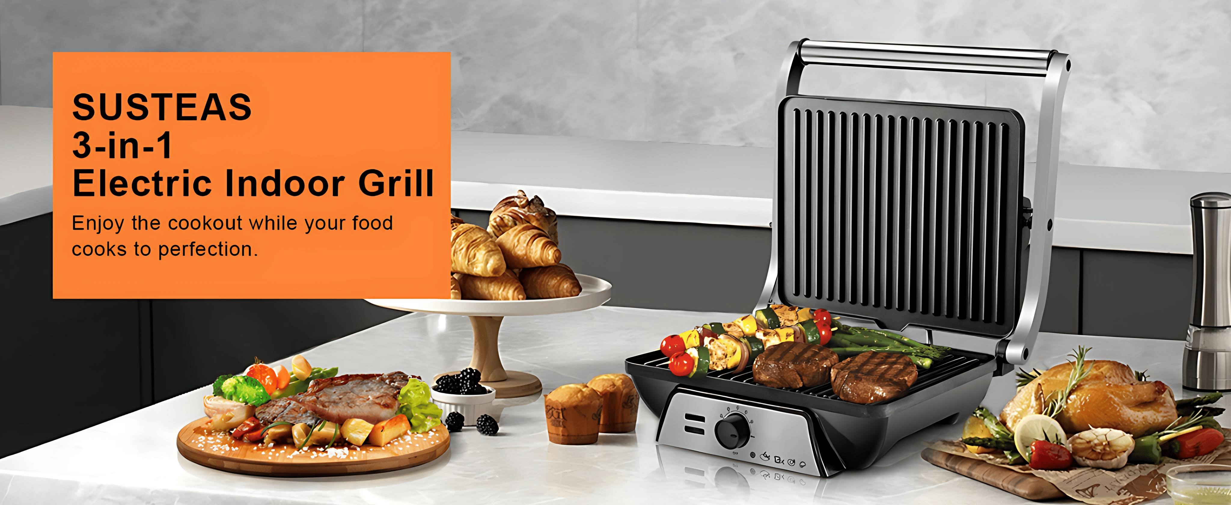 When you have the SUSTEAS Electric Indoor Searing Grill, there’s no need to fire up an outdoor grill to get great grilled flavor. Best of all, food won't stick to the grilling plate since it has a nonstick coating, which, paired with the use of a drip tray, keep the table as clean as ever.