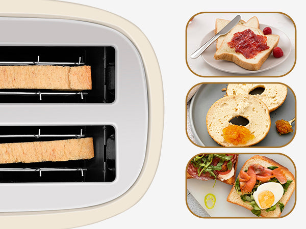 The generously sized 1.6-inch slot can fit a diverse range of bread types, including bagels, white bread, sandwiches, waffles, muffins, and various others.
