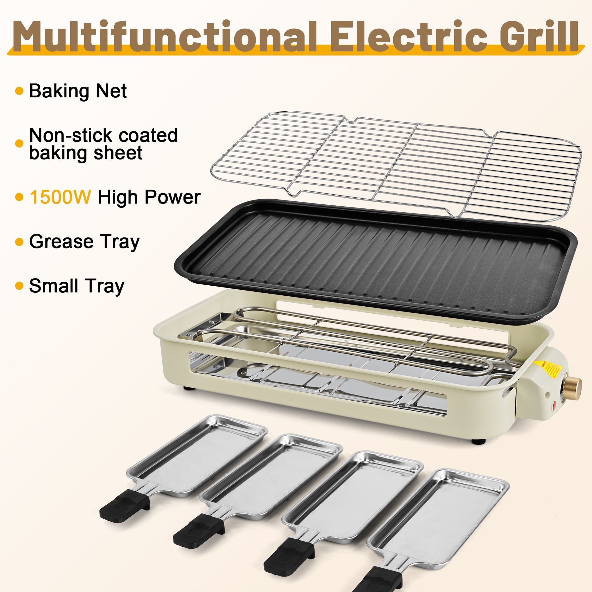 SUSTEAS Smokeless Indoor Electric Grill with Removable Extra-Large Plate